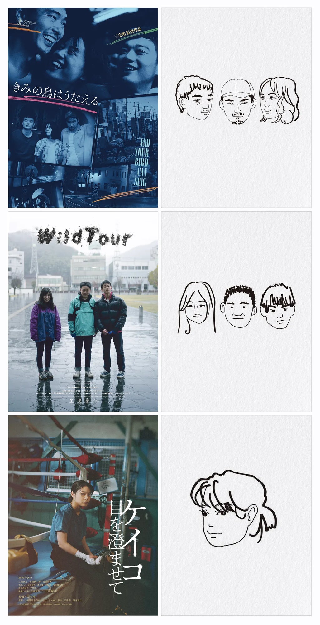 Wild Tour At an art center in Yamaguchi, university freshman Ume joins a workshop documenting local plant DNA. She leads two middle school boys, Take and Shun, through forests and beaches to collect specimens. As they explore the natural world together, unspoken feelings surface: encounters, confessions, and the quiet sting of young love.